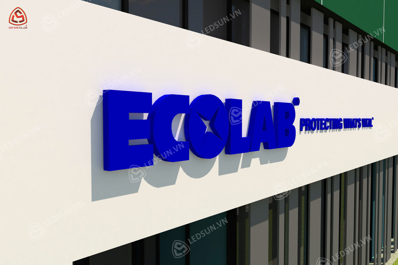 Dự án thiết kế thi công nhà máy Ecolab Việt Nam do Led Sun thực hiện đã thành công với những giải pháp sáng tạo, chuyên nghiệp. Led Sun chịu trách nhiệm thiết kế và thi công hệ thống bảng hiệu quảng cáo, bao gồm bảng hiệu LED hiện đại và các biển chỉ dẫn nội bộ, giúp Ecolab thể hiện được hình ảnh thương hiệu mạnh mẽ và ấn tượng. Bên cạnh đó, Led Sun cũng đã thiết kế và thi công nội thất văn phòng, tạo ra không gian làm việc hiện đại, tinh tế, phù hợp với nhu cầu và phong cách làm việc của Ecolab. Dự án này không chỉ nâng cao hiệu quả truyền thông thương hiệu mà còn mang đến môi trường làm việc thoải mái, năng động cho đội ngũ nhân viên tại Ecolab.
