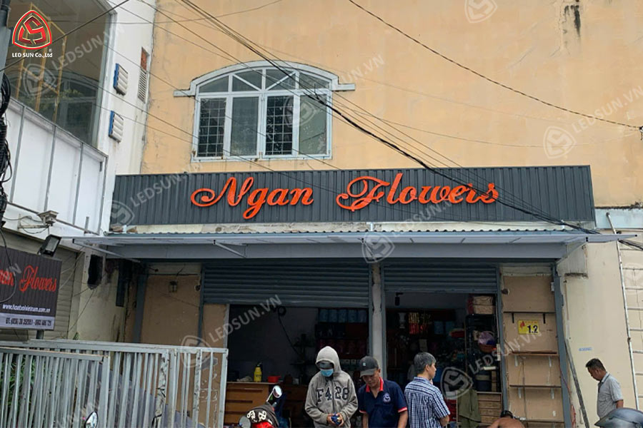 Kết hợp giữa nền tôn sóng bền chắc và chữ mica nổi giúp bảng hiệu trở nên nổi bật, dễ đọc.