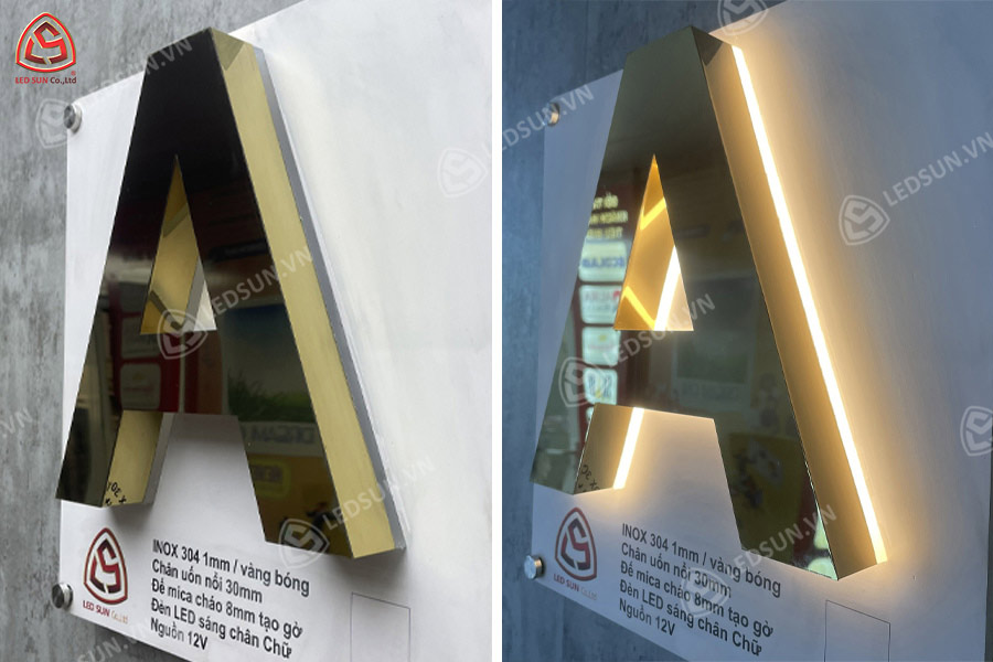 Chữ inox vàng gương chân mica cháo đang trở thành xu hướng trong thiết kế bảng hiệu hiện đại nhờ vẻ ngoài sang trọng, độ bền cao và hiệu ứng ánh sáng ấn tượng. Loại chữ này không chỉ giúp thu hút sự chú ý mà còn thể hiện đẳng cấp thương hiệu, đặc biệt phù hợp cho các cửa hàng, showroom, quán ăn hay doanh nghiệp muốn tạo dấu ấn chuyên nghiệp. Vậy chữ inox vàng gương chân mica cháo có ưu điểm gì nổi bật? Ứng dụng ra sao? Hãy cùng Led Sun tìm hiểu chi tiết trong bài viết dưới đây!