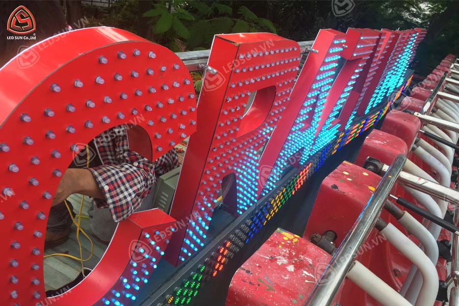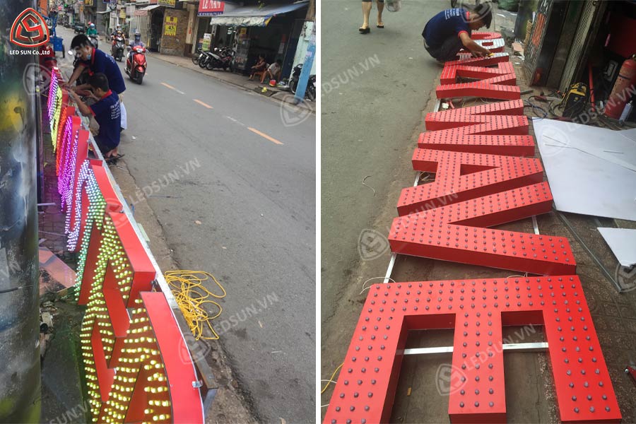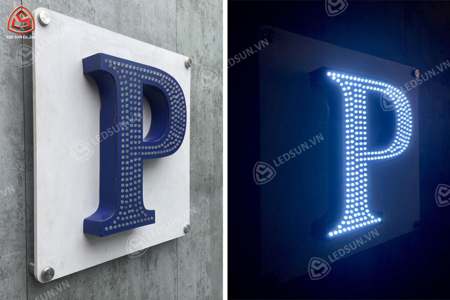 Chữ nổi alu LED ruồi sáng mặt là loại chữ nổi được làm từ vật liệu Alu (aluminum composite), kết hợp với đèn LED bên trong và có thiết kế “ruồi” (tức là đèn LED được gắn vào các điểm nhất định xung quanh mặt chữ). Đặc điểm “sáng mặt” nghĩa là ánh sáng LED sẽ phát ra từ mặt chữ, làm cho chữ nổi bật và tạo hiệu ứng ánh sáng đều trên bề mặt chữ. Loại chữ này thường được sử dụng trong các bảng hiệu, biển quảng cáo hoặc logo cần hiệu ứng chiếu sáng mạnh mẽ và thu hút sự chú ý, đặc biệt vào ban đêm hoặc trong môi trường ánh sáng yếu.