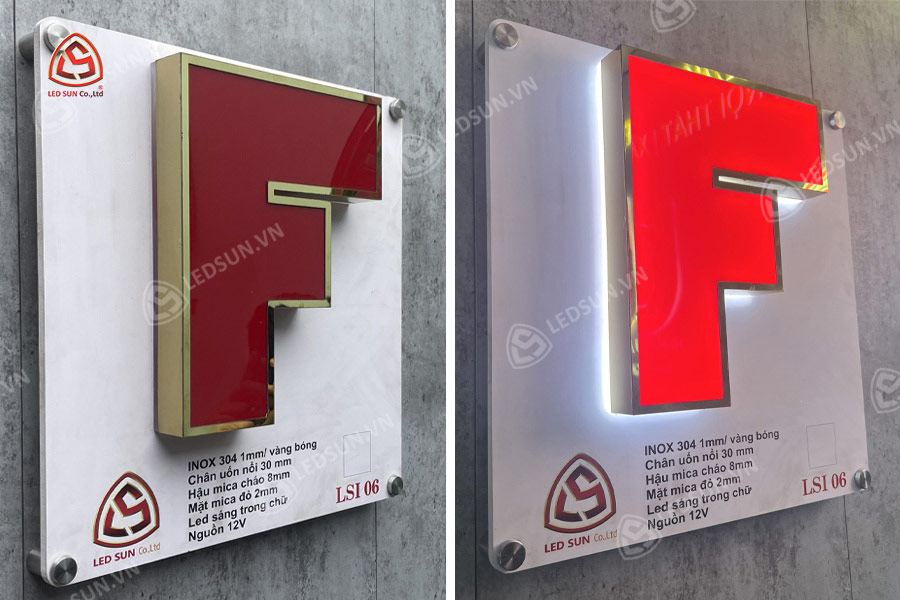 Chữ nổi inox mặt mica hậu mica cháo là loại chữ nổi được làm từ inox kết hợp với hai lớp mica. Mặt chữ được làm từ inox, trong khi phía sau được gắn một lớp mica cháo (mica có màu sắc mờ, không trong suốt) để tạo độ sâu và làm nền cho chữ. Loại chữ này mang lại vẻ ngoài sang trọng, hiện đại và độ bền cao, thường được sử dụng trong các bảng hiệu, logo hoặc quảng cáo ngoài trời.