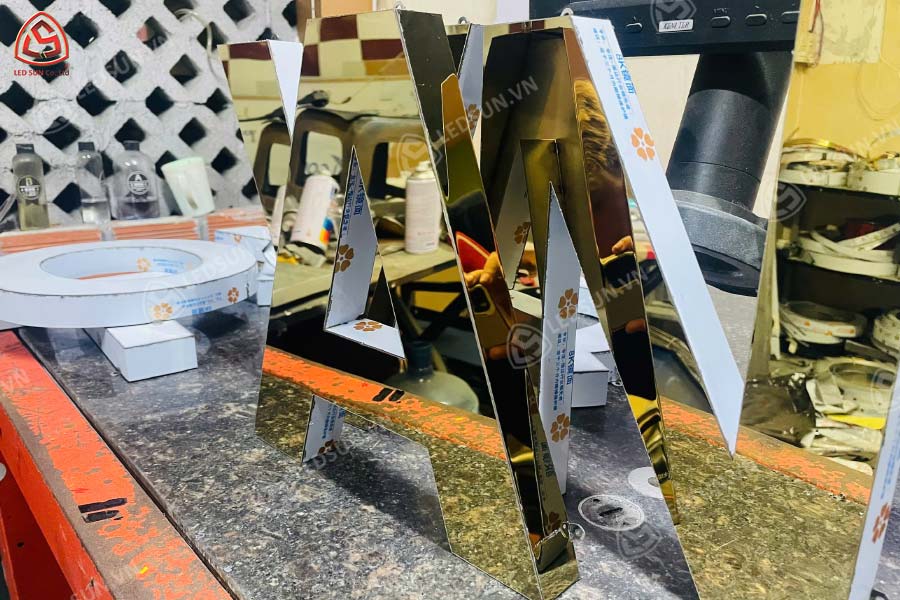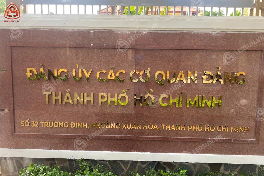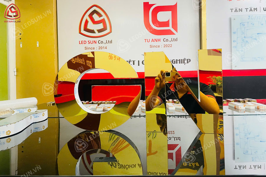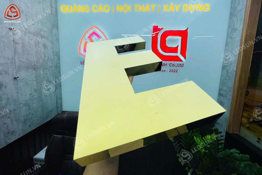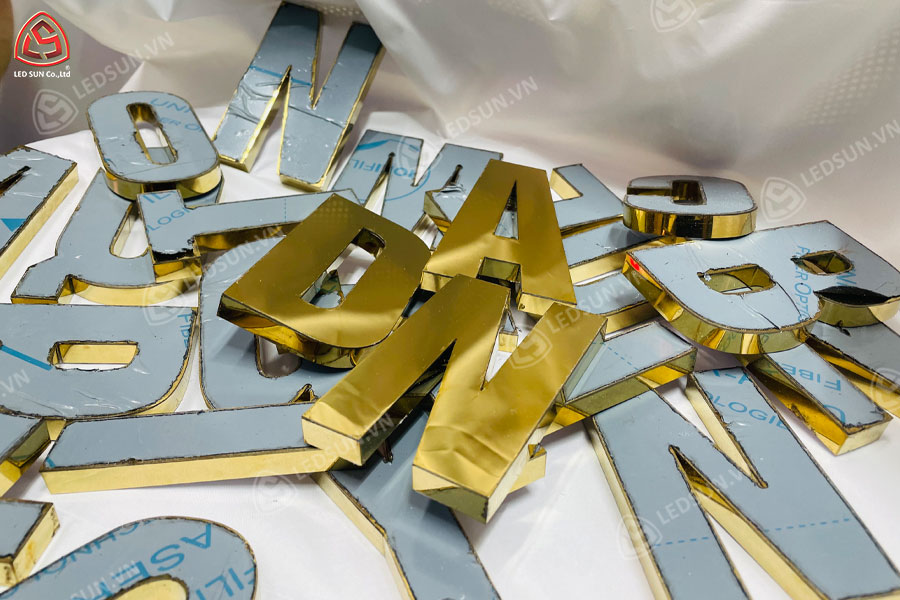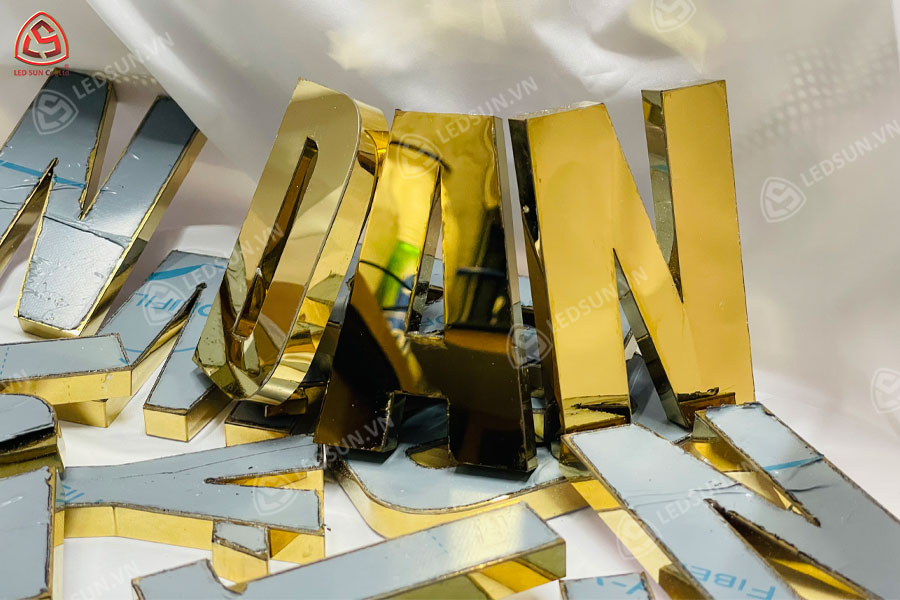 Chữ nổi inox vàng gương là một trong những loại bảng hiệu cao cấp, sang trọng và được ưa chuộng hiện nay. Loại chữ này được làm từ chất liệu inox không gỉ, phủ màu vàng bóng và đánh bóng gương, tạo nên hiệu ứng phản chiếu ánh sáng rất đẹp mắt. Nhờ bề mặt sáng bóng và độ bền cao, chữ inox vàng gương thường được gia công dưới dạng nổi 3D để tạo chiều sâu, thu hút ánh nhìn, đặc biệt khi kết hợp với đèn LED hắt sáng phía sau hoặc dưới chân.