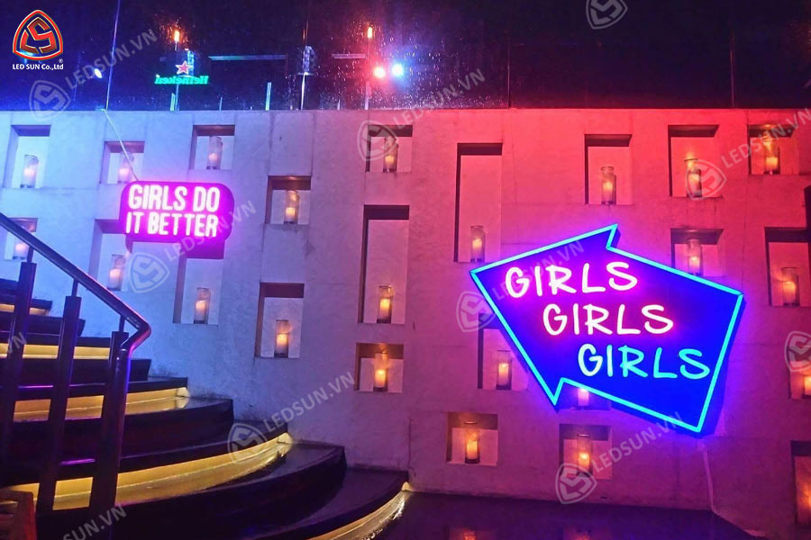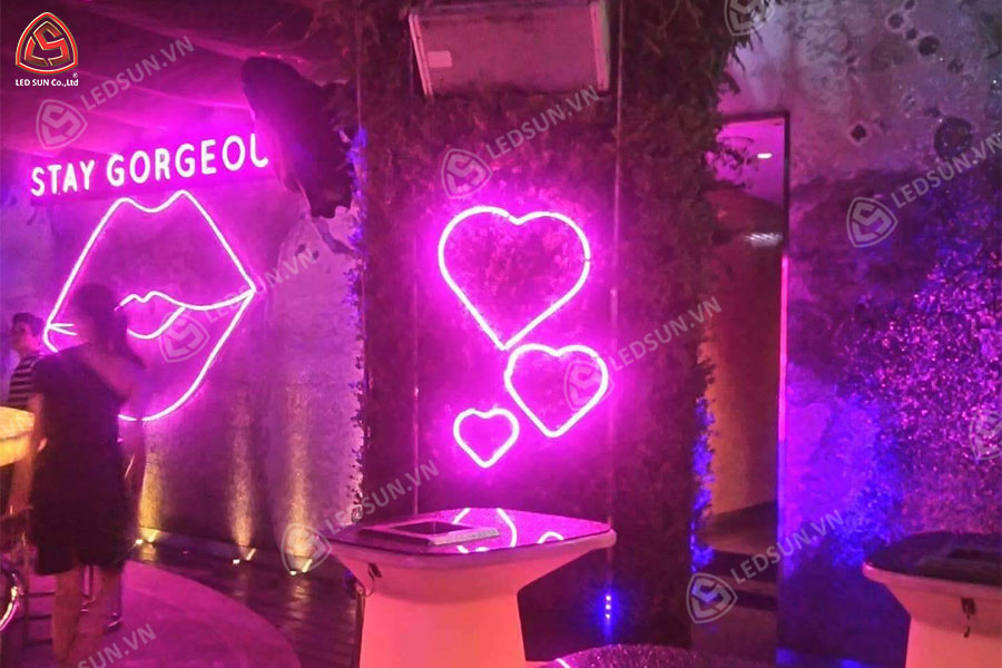 Led neon thường xuất hiện trong các sự kiện như tiệc cưới, sinh nhật, khai trương, Noel, Tết… với các dòng chữ chào mừng hoặc hình ảnh trang trí rực rỡ.